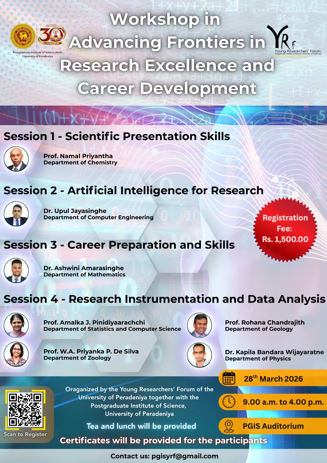 The Young Researchers’ Forum of the PGIS is organizing a one-day workshop designed to enhance research skills, scientific communication, AI applications in research, career preparation, and data analysis.